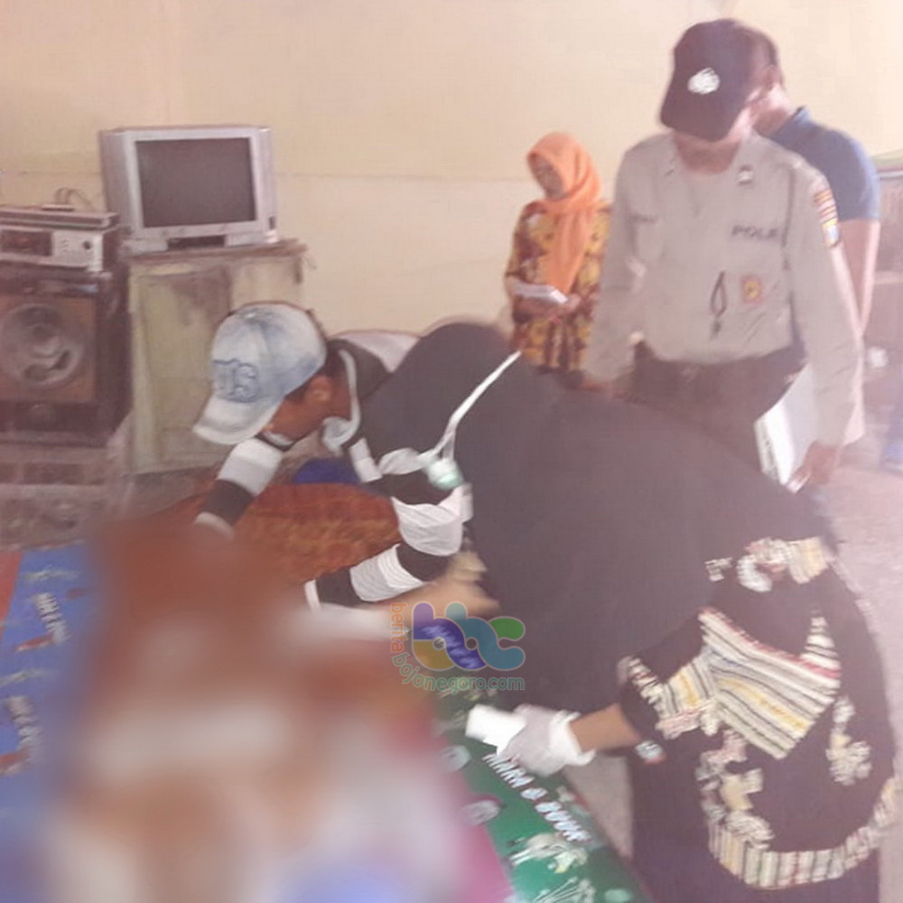 Petugas saat lakukan identifikasi jenazah korban Ngabit (75), warga Dusun Calonan Desa Jegreg Kecamatan Modo Lamongan, yang meninggal dunia saat ngopi di Desa Pejok Kecamatan Kepohbaru Bojonegoro. Kamis (28/08/2019)