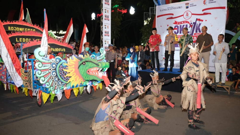Sementara itu, Wakil Bupati Bojonegoro Drs Budi Irawanto MPd, dalam sambutannya menuturkan bahwa dalam pawai oklik Kemerdekaan tersebut mengambil tagline #JogoBojonegoroBarengBareng.