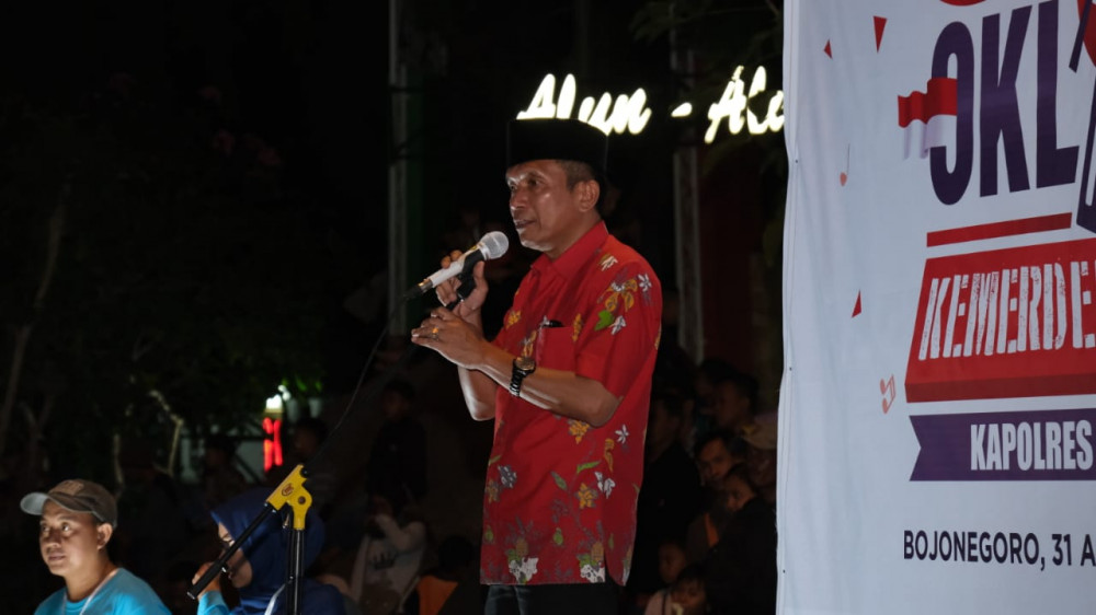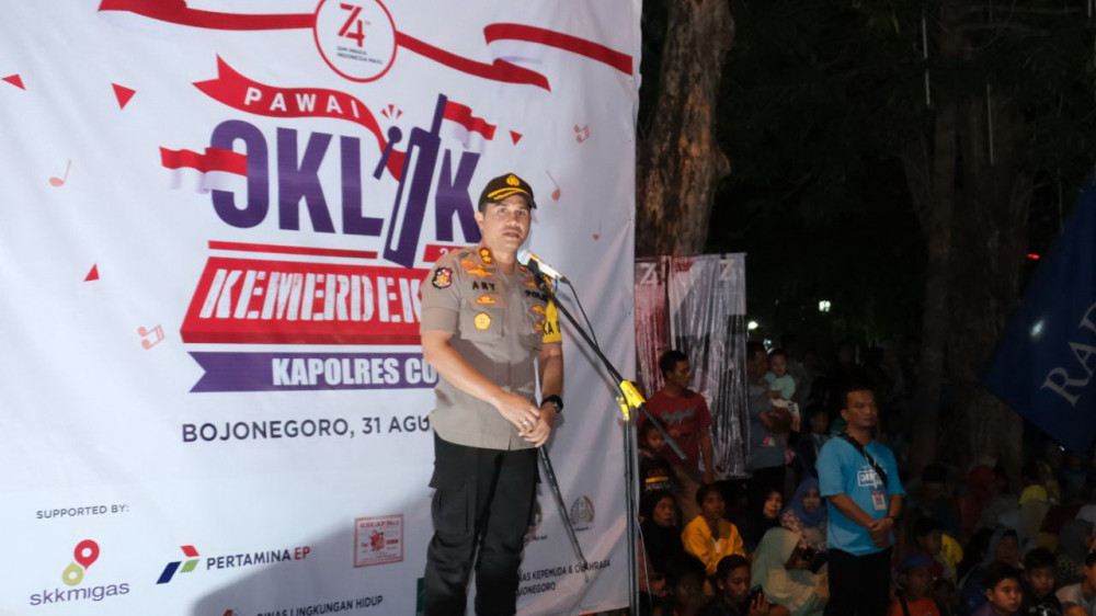 Kapolres Bojonegoro AKBP Ary Fadli SIK MH MSi, dalam sambutnnya menuturkan bahwa Pawai Oklik Kemerdekaan ini mengambil hastag #JogoBojonegoro, di mana dalam menjaga kamtibmas yang aman, damai dan tentram harus bersama-sama, tidak hanya tugas TNI-Polri saja, tapi juga dengan Pemerintah Daerah serta masyarakat.