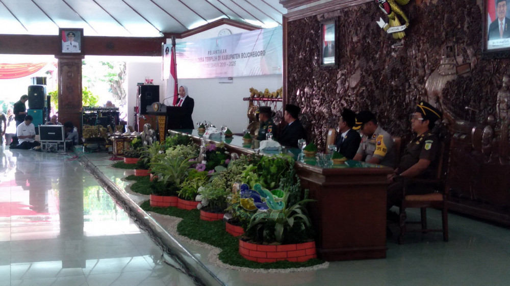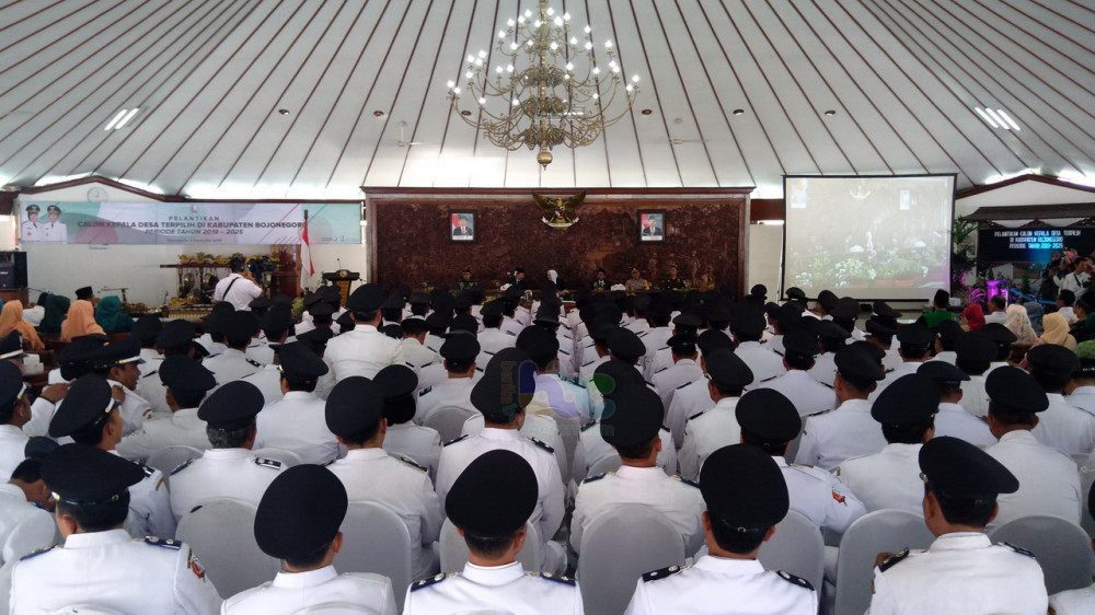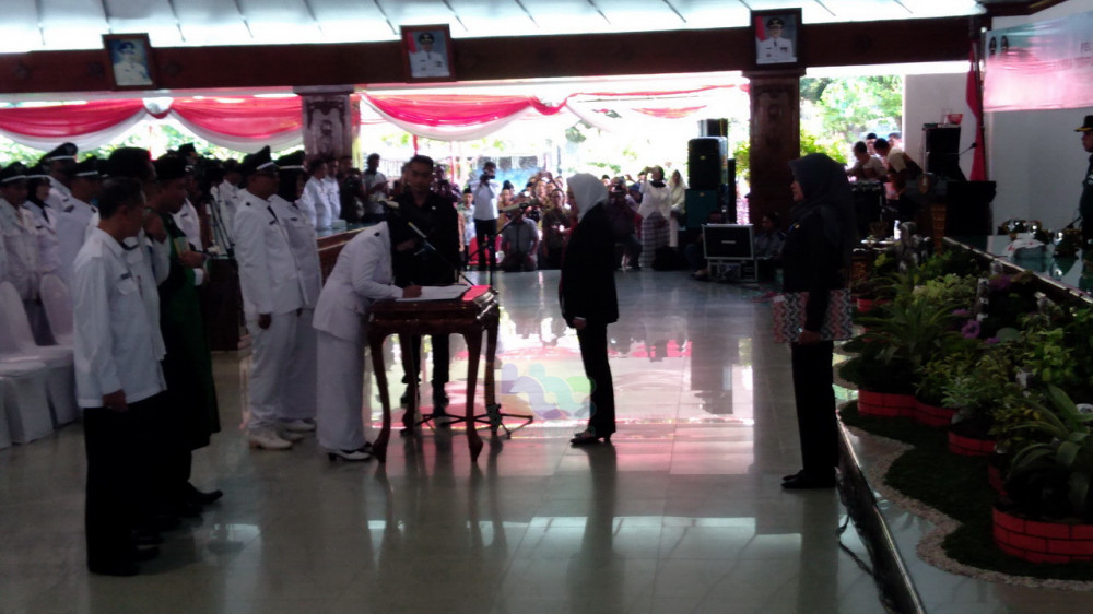 Suasa pelantikan kepala desa yang terpilih dalam Pilkades Serentak 2019, di Pendapa Malowopati, Pemkab Bojonegoro. Rabu (04/09/2019)