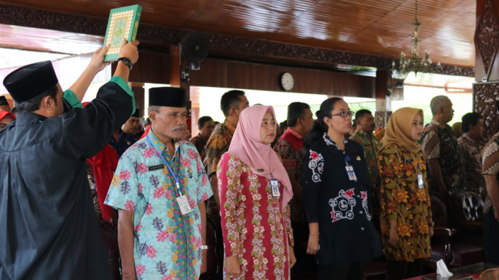 Pejabat Administrator, Pejabat Pengawas, Kepala Sekolah dan Pejabat Fungsional di lingkungan Pemkab Blora, saat laksanakan sumpah jabatan. Jumat (06/09/2019) siang.