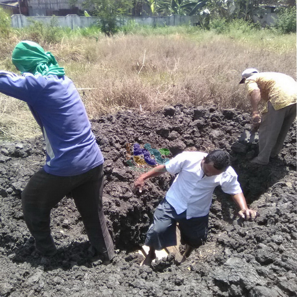 Petugas RSUD Bojonegoro, saat memakamkan jenazah Mr X yang ditemukan di kawasan hutan Desa Panjang Kecamatan Kedungadem Bojonegoro. Minggu (08/09/2019)