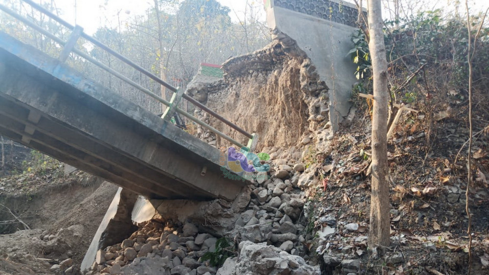 Bojonegoro - Jembatan Slamet, yang berada di Dukuh Sukun Desa Smbongrejo Kecamatan Gondang Kabupaten Bojonegoro, pada sisi sebelah utara, pada Minggu (08/09/2019) sekira pukul 13.45 WIB, putus.