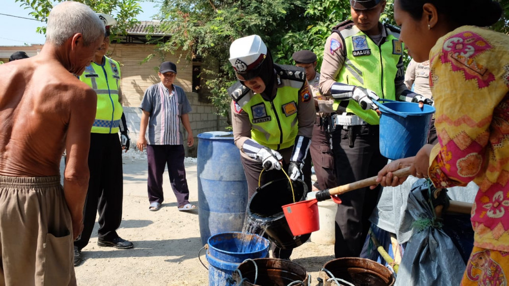 “Kami salurkan bantuan berupa air bersih dari Kapolres Bojonegoro kepada warga, dengan harapan bisa membantu warga untuk memenuhi kebutuhan air sehari-hari,” tutur Kasat Lantas AKP Aristianto BS.
