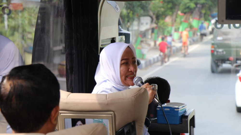 Bupati Bojonegoro, Dr Hj Anna Muawanah, saat memberikan keterangan dalam perjalanan menuju Exiting Tol Nganjuk. Minggu (15/09/2019)