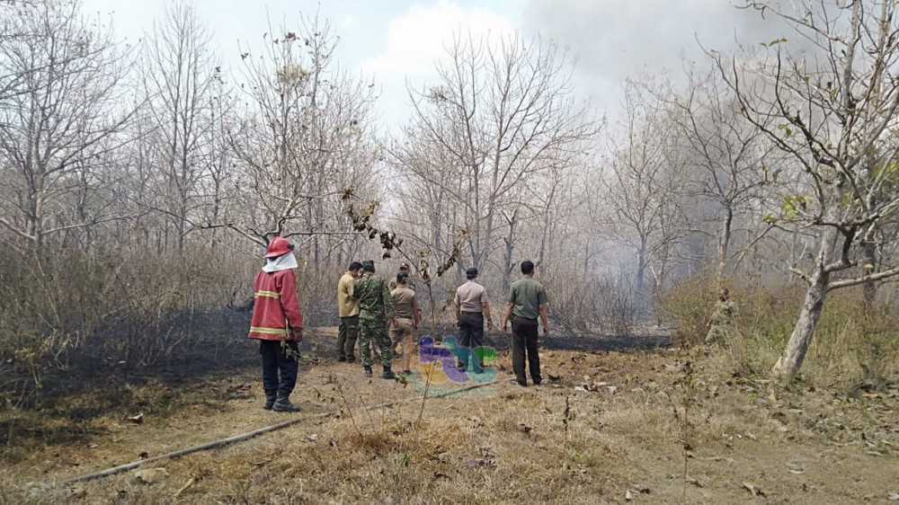Bojonegoro - Kebakaran semak belukar hutan jati milik Perhutani, terjadi di Petak 3C RPH Tinggang, BKPH Tegaron, KPH Padangan, turut Desa Purworejo Kecamatan Padangan Kabupaten Bojonegoro, pada Senin (23/09/2019) sekira pukul 11.00 WIB, terbakar.