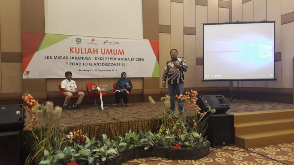 Kuliah Umum Pengelolaan Industri Hulu Migas 'Road To Giant Discoveries' yang digelar SKK Migas Jabanusa dan PEPC pada mahassiswa Unugiri Bojonegoro. Rabu (25/09/2019)