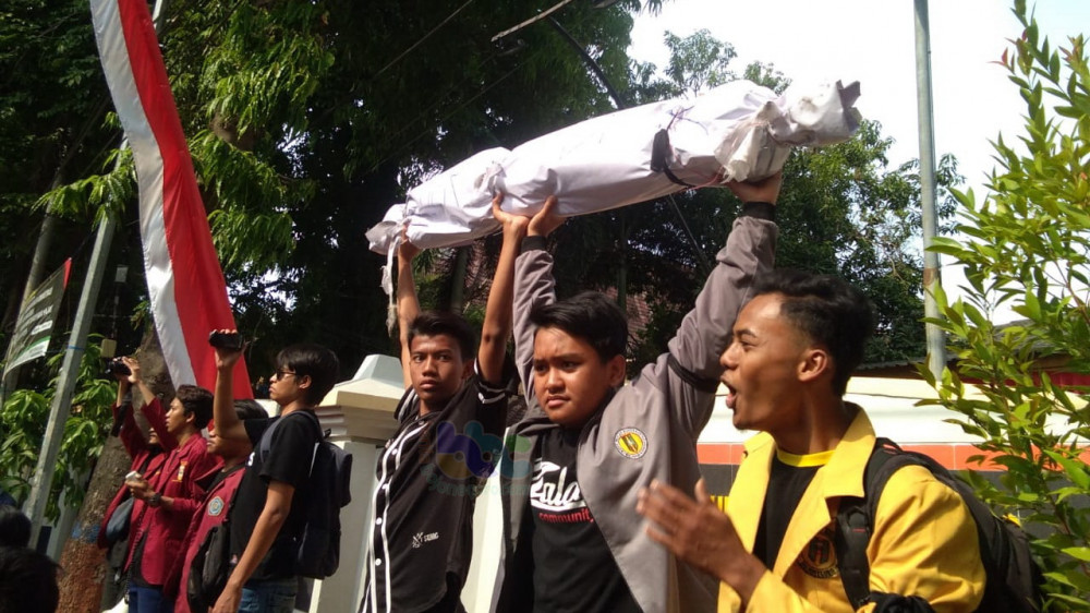 Aksi unjuk rasa mahasiswa Bojonegoro di depan Kantor DPRD Bojonegoro, Jumat (27/09/2019)