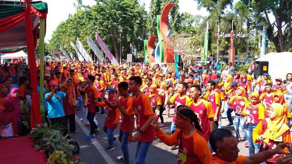 Sebanyak 772 penyandang disabilitas rungu saat catat rekor baru, Flash Mob Penyandang Disabilitas Rungu Terbanyak, di Bojonegoro. Minggu (29/09/2019)