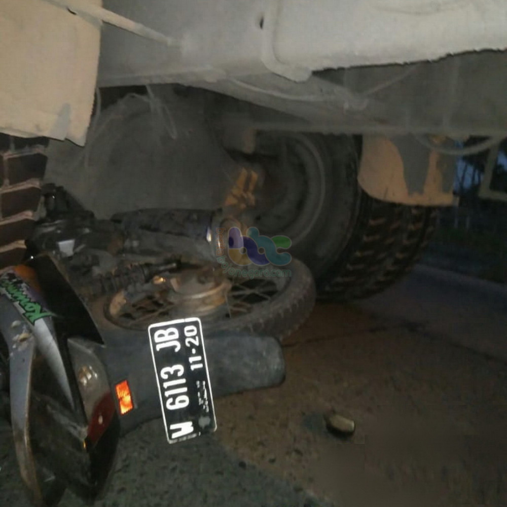 Sesampai di lokasi kejadian, pengemudi truk berhenti dan mundur. Saat itu, pengendara motor berupaya membunyikan klakson, namun diduga tidak didengar oleh pengemudi truk, dan karena jarak yang terlalu dekat sehingga sepeda motor tersebut tertabrak truk tersebut.