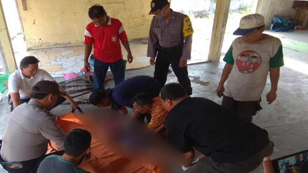 Jenazah Takimin (61), warga Desa Sukorejo Kecamatan Bojonegoro Kota, saat ditemukan meninggal dunia di area Pasar Kampung Baru, Desa Sukorejo Kecamatan Bojonegoro Kota. Sabtu (05/10/2019)