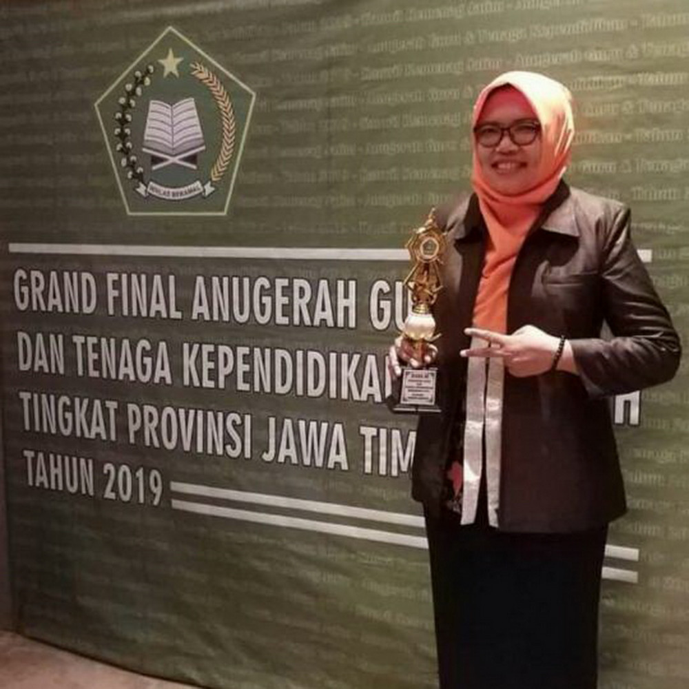 Aning Wulandari, peraih Juara Ketiga, ajang Anugerah Guru dan Tenaga Kependidikan Madrasah Tingkat Propinsi Jawa Timur. Selasa (08/10/2019)