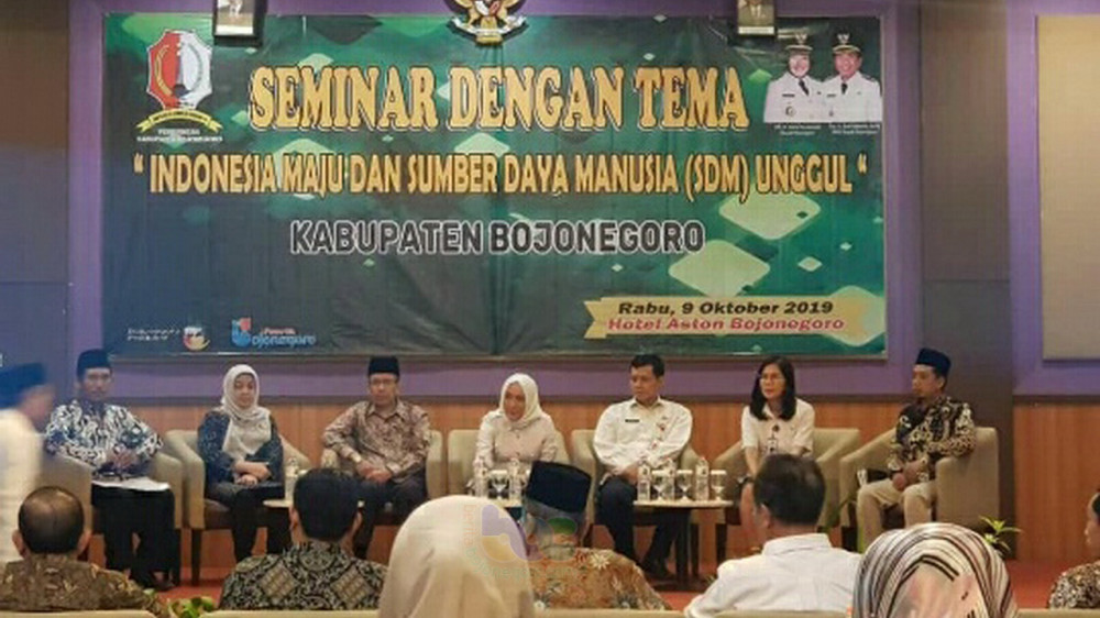 Bojonegoro - Pemerintah Kabupaten (Pemkab) Bojonegoro pada Rabu (09/10/2019), bertempat di salah satu hotel di Bojonegoro, menggelar seminar dengan tema 'Indonesia Maju dan Sumber Daya Manusia (SDM) Unggul', yang dihadiri dan dibuka oleh Bupati Bojonegoro, Dr Hj Anna Muawanah.