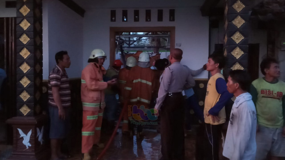 Petugas Damkar saat memadamkan api dapur milik Suyip (53), warga Dusun Beketuk Desa Wedoro Kecamatan Sugihwaras Bojonegoro, Kamis (10/10/2019)