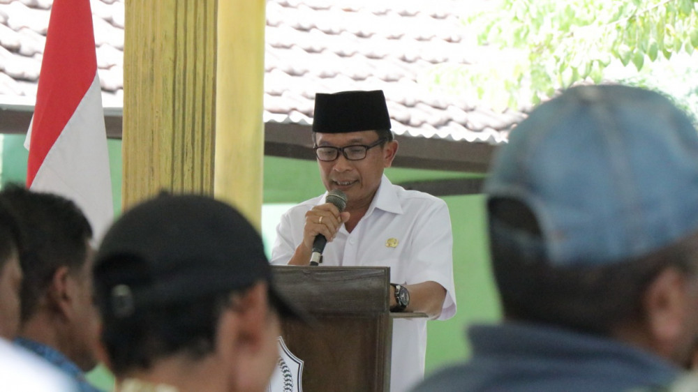Kepala Dinas Pekerjaan Umum Sumber Daya Air (PU SDA) Edi Susanto SSos, saat beri sambutan dala acara pembinaan kepada HIPPA dan GHIPPA, di Desa kedaton Kecamatan Kapas. (rabu (16/10/2019)