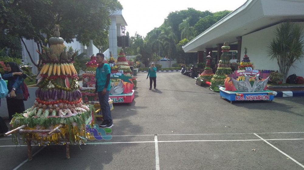 Sejumlah gunungan telah tiba di Pendapa pemkab Bojonegoro, untuk mengikuti grebeg berkah. Sabtu (19/10/2019) malam nanti.