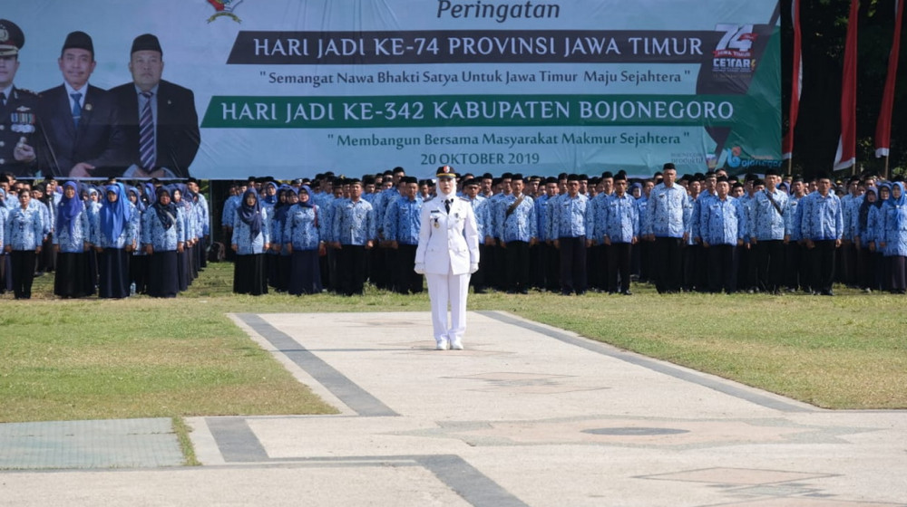 Upacara Peringatan Hari Jadi Kabupaten Bojonegoro ke-342 dan Peringatan Hari Jadi Provinsi Jawa Timur ke 74, di Alun-alun Bojonegoro, Minggu (20/10/2019).