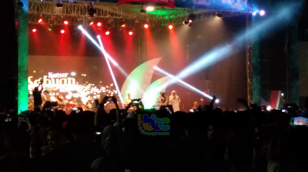 Bojonegoro - Konser Sabyan Gambus, dengan vokalis Nissa Sabyan, Kamis (24/10/2019) malam, di Alun-alun Bojonegoro, dihadiri ribuan penonton.
