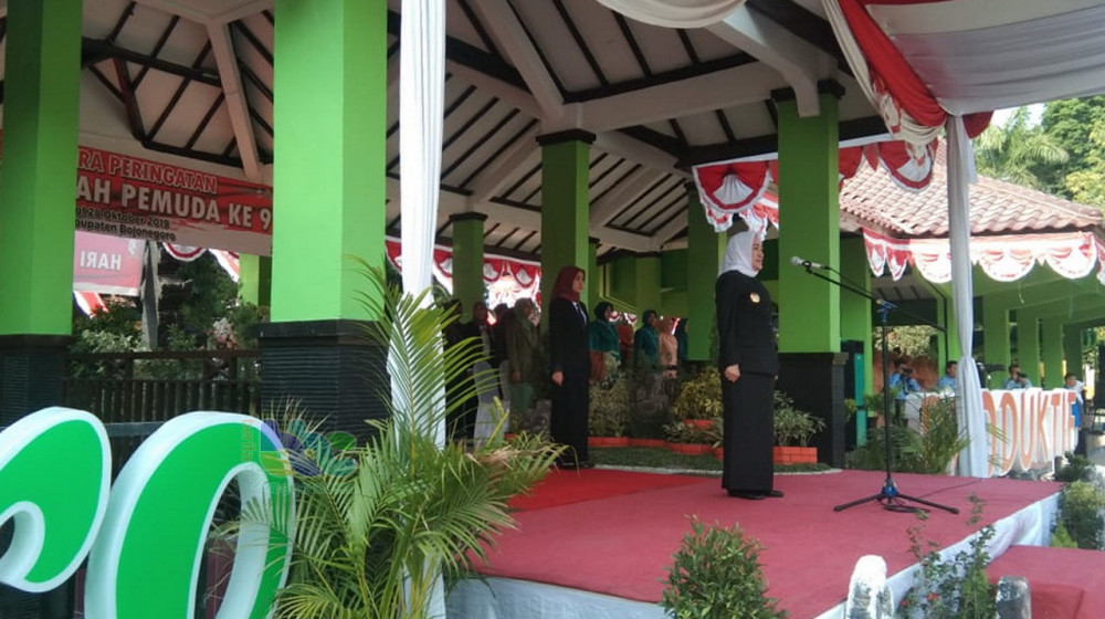 Bupati Bojonegoro, Dr Hj Anna Muawanah, saat pimpin pelaksanaan upacara Peringatan Hari Sumpah Pemuda ke-91, di Alun-alun Bojonegoro. Senin (28/10/2019) pagi.