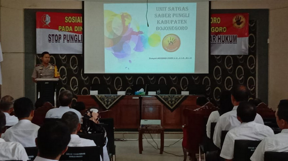Bojonegoro - Tim penyuluhan Unit Pemberantasan Pungutan (UPP) Sapu Bersih (Saber) Pungutan Liar (Pungli) Kabupaten Bojonegoro, pada Rabu (30/10/2019), kembali menggelar sosialisasi Sapu Bersih Pungutan Liar, di Dinas PU Sumber Daya Air Kabupaten Bojonegoro.