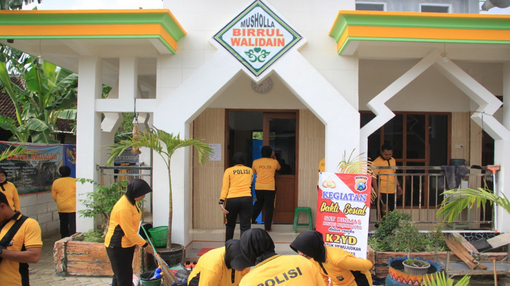 Bojonegoro - Dalam kegiatan Jumat Berkah, anggota polisi dan ASN Polres Bojonegoro, pada Jumat (01/11/2019) pagi, lakukan kerja bakti membantu renovasi pembangunan musala warga di Desa Pacul Kecamatan Bojonegoro Kota.