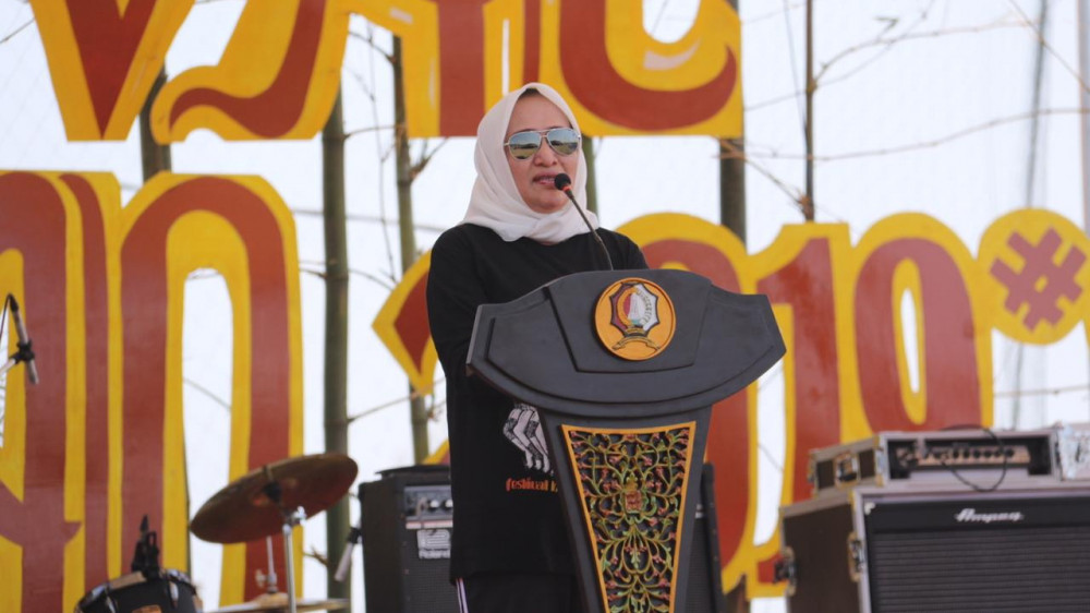 Bupati Bojonegoro, Dr Hj Anna Muawanah, saat beri sambutan dalam acara Festival Bengawan di Desa Pilanggede Kecamatan Balen Kabupaten Bojonegoro. Sabtu (09/11/2019)