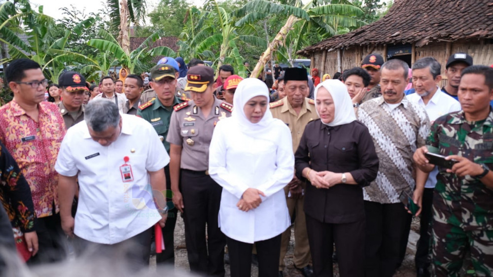 Bojonegoro - Gubernur Jawa Timur, Dra Hj Khofifah Indar Parawansa MSi, pada Selasa (12/11/2019) sore, meninjau lokasi bencana angin di Desa Prambatan Kecamatan Balen Kabupaten Bojonegoro.