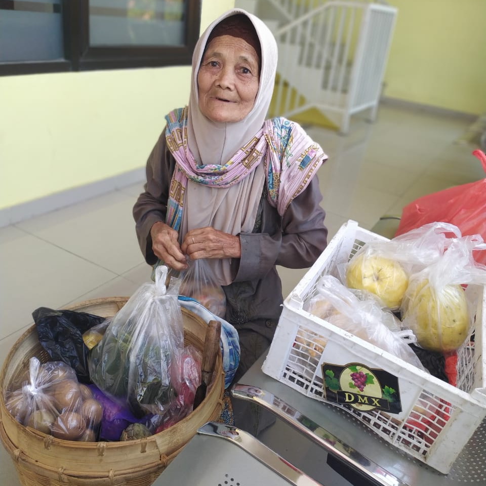 Jarum jam menunjukkan pukul 12.30 WIB, nenek tersebut menata dagangannya berupa buah, gorengan, dan beberapa kue basah.