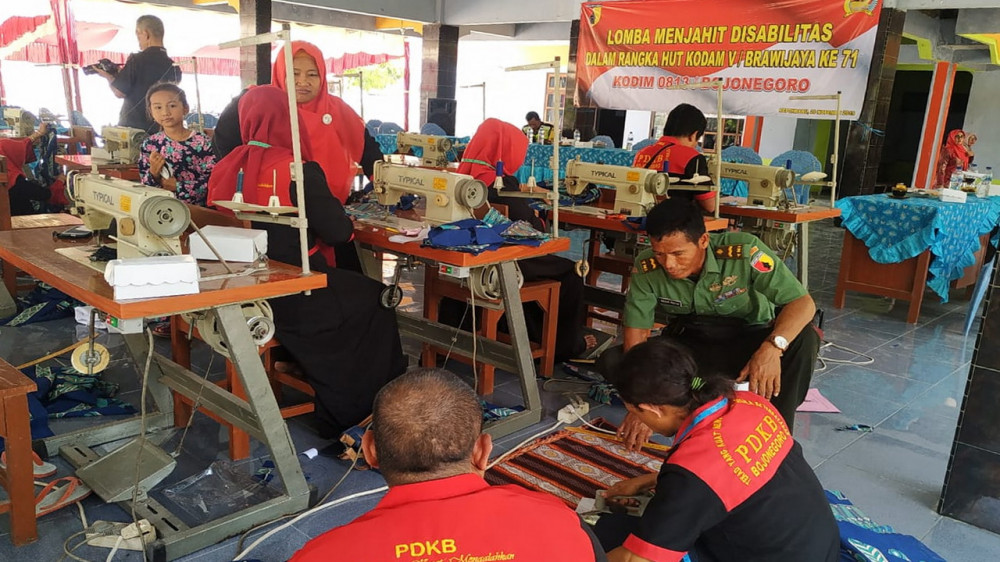 Lomba Menjahit Disabilitas, Peringatan HUT Kodam V Brawijaya, Digelar di Kepohbaru Bojonegoro