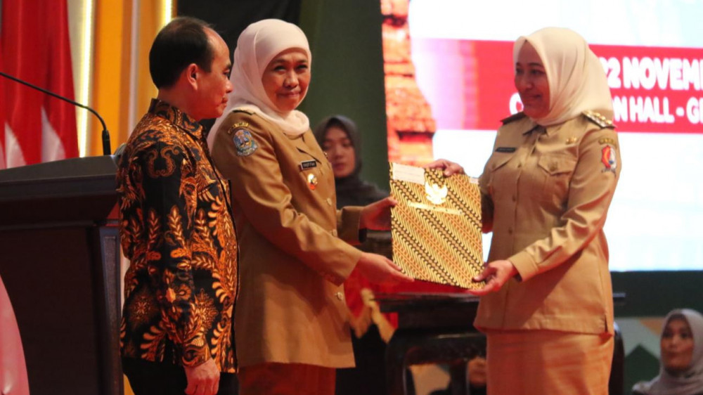 Surabaya - Bupati Bojonegoro, Dr Hj Anna Muawanah, pada Jumat (22/11/2019), hadiri Rapat Koordinasi Tingkat Provinsi Jawa Timur 2019, yang dirangkai dengan penyerahan Daftar Isian Pelaksanaan Anggaran (DIPA) Tahun Anggaran 2020, oleh Gubernur Jawa Timur, Dra Hj Khofifah Indar Parawansa MSi, kepada Bupati dan Walikota se Jawa Timur.