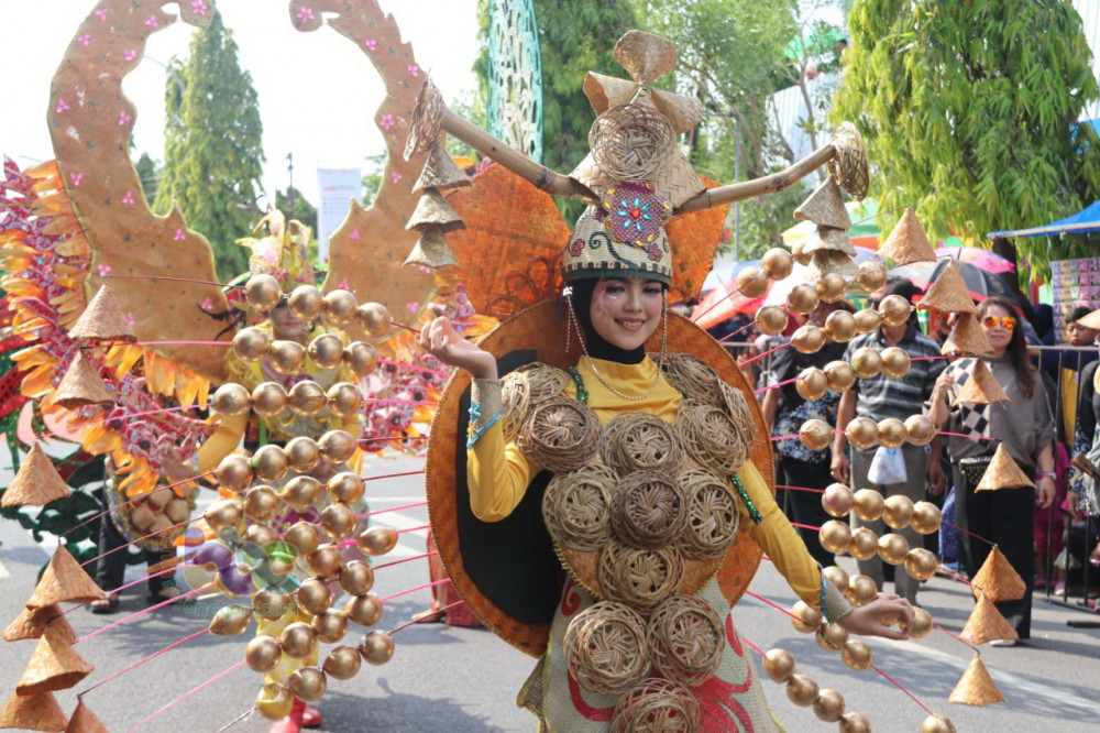 Blora - Acara Blora Carnival 2019 yang diselenggarakan Dewan Kerajinan Nasional Daerah (Dekanasda) Kabupaten Blora, bekerjasama dengan Dinas Kepemudaan Olah Raga Kebudayaan Pariwisata (Dinporabudpar) Kabupaten Blora, yang digelar Sabtu (23/11/2019), berhasil memikat ribuan penonton di sepanjang rute dari Alun-Alun hingga simpang empat Grojogan Blora.