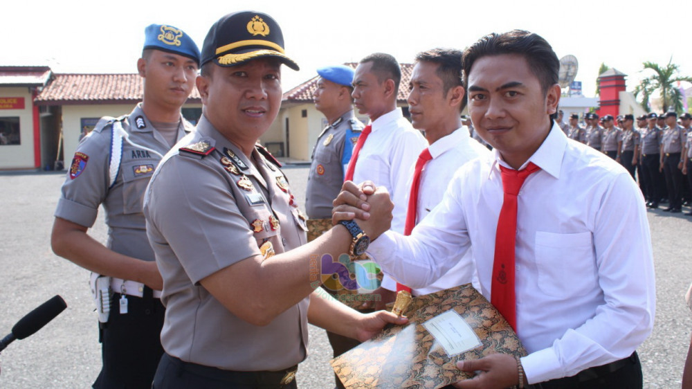 Blora - Kapolres Blora, AKBP Antonius Anang SIK MH, dalam apel pagi, Senin, (02/12/2019), di halaman Polres Blora, berikan penghargaan kepada anggotanya yang berprestasi.