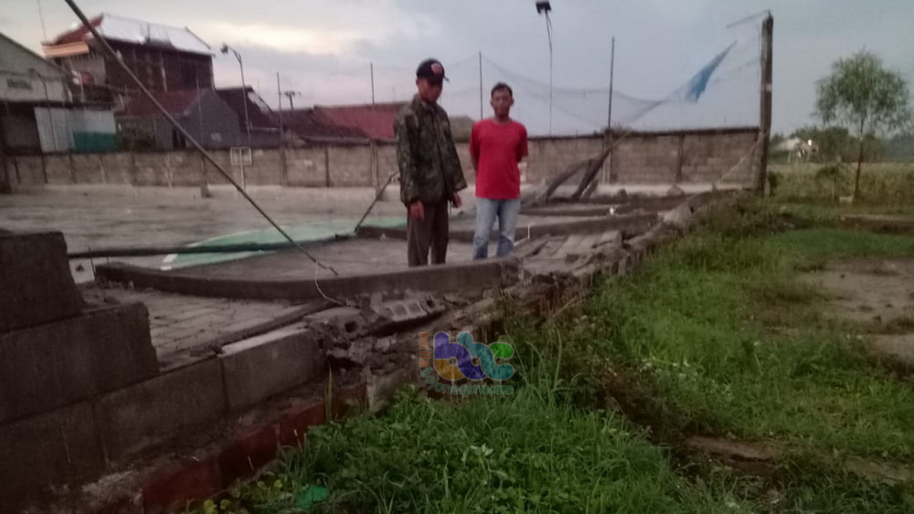 Bangunan tembok lapangan futsal milik warga di Desa Sidorejo Kecamatan Kedungadem, yang rusak akibat diterjang angin kencang, Senin (02/12/2019)