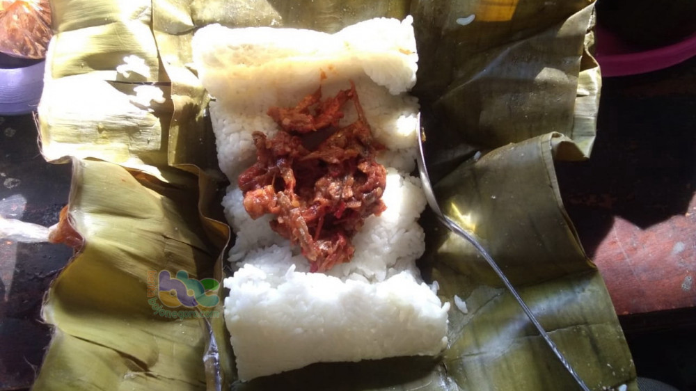 Nasi Gulung Wonocolo, makanan khas di objek wisata Geo Heritage (Geopark) Teksas Wonocolo, Desa Wonocolo Kecamatan Kedewan Kabupaen Bojonegoro.