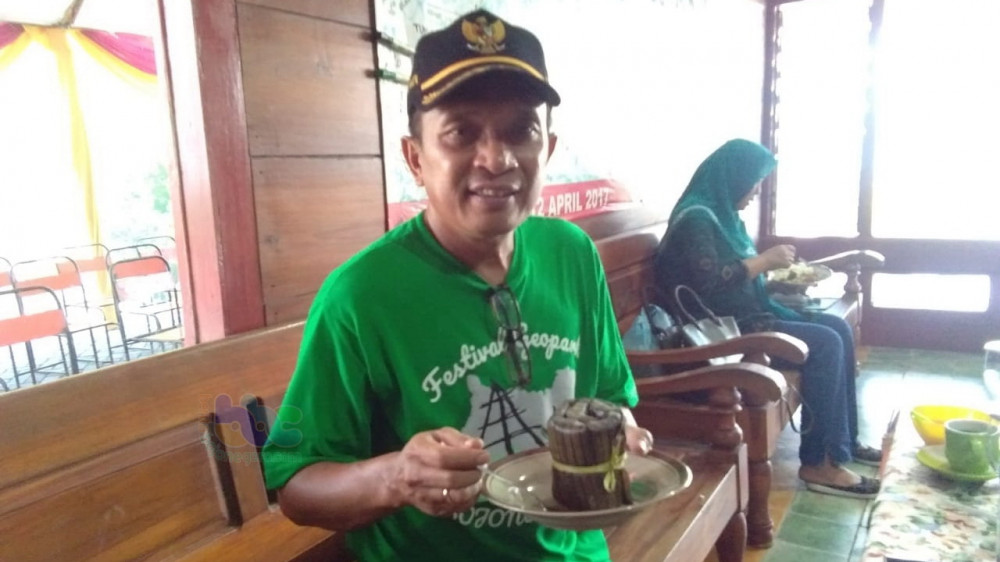 Wakil Bupati Bojonegoro, Drs H Budi Irawanto MPd; saat nikmati Nasi Gulung Wonocolo, sebelum membuka kegiatan Festival Geopark ke-2 Teksas Wonocolo 2019. Minggu (08/12/2019)