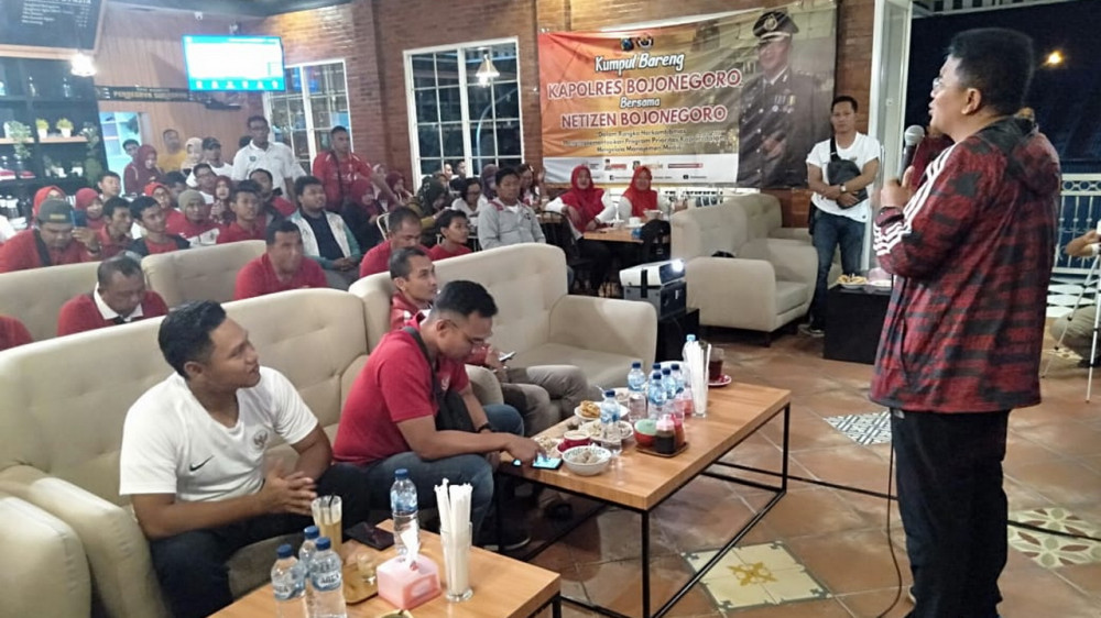 Bojonegoro - Kapolres AKBP M Budi Hendrawan SIK MH, pada Selasa (10/12/2019) malam, bertempat di Café Omah Ngopi di Jalan Lettu Suyitno Bojonegoro, kumpul bareng dengan puluhan Netizen.