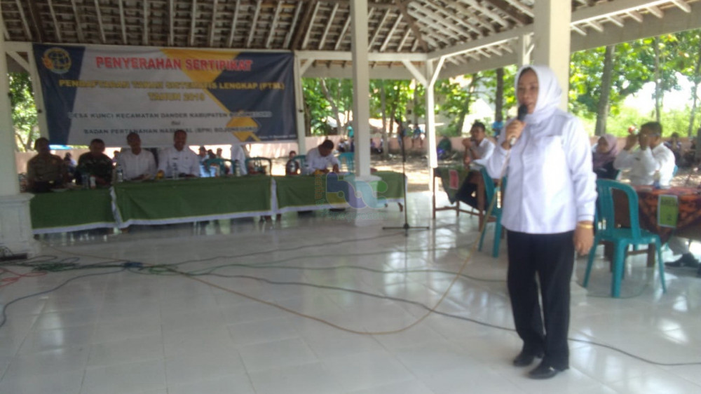 Bojonegoro - Badan Pertanahan Nasional (BPN) Kabupaten Bojonegoro pada Rabu (11/12/2019), kembali bagikan 800 setifikat dari total sejumlah 4.559 sertifikat, kepada warga Desa Kunci Kecamatan Dnder Kabupaten Bojonegoro, setempat, penerima program Pendaftaran Tanah Sismatis Lengkap (PTSL). Sementara, sisanya akan dibagikan secara bertahap.