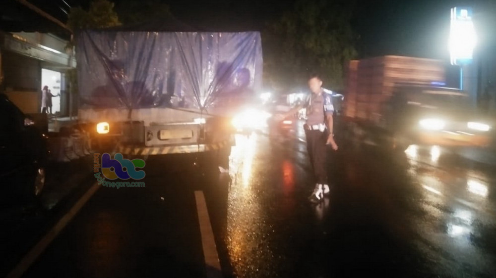 "Diduga karena kondisi hujan dan jalan licin serta penerangan jalan yang agak gelap sehingga pengendara sepeda motor tersebut menabrak bagian belakang truk," tutur Kapolsek.