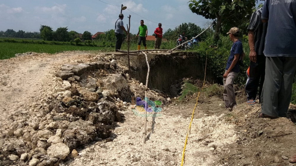 Kondisi jalan poros desa di Desa Butoh Kecamatan Ngasem Kabupaten Bojoegoro, yang longsor pada Sabtu (28/12/2019)