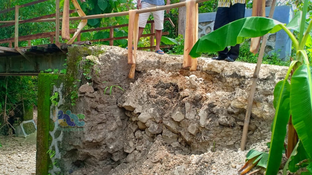 "Untuk kejadianya sore mas, waktu tepatnya kurang tahu. Tahu-tahu tebing jembatan tersebut sudah longsor," tutur Mukmin, Kades Jumok. Kamis (02/01/2020) sore.