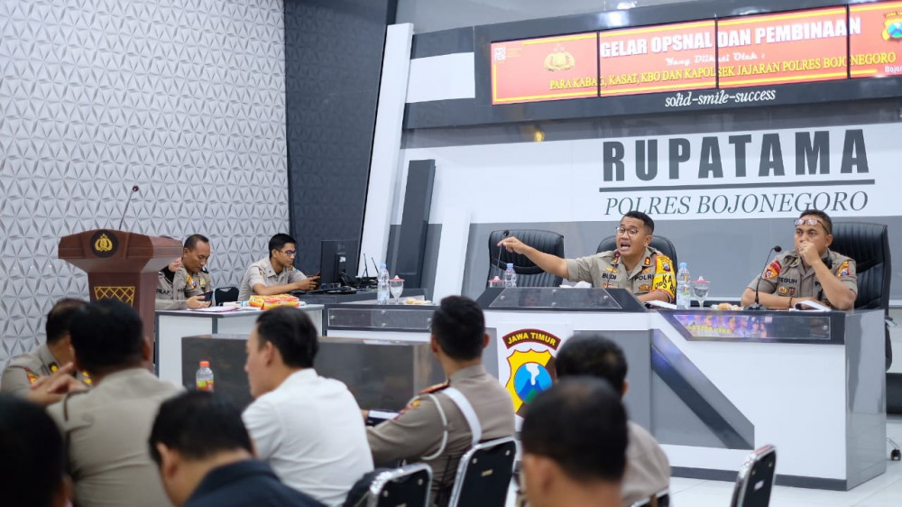 Kegiatan Gelar Operasional Anev Kamtibmas tersebut dipimpin oleh Kapolres Bojonegoro, AKBP M Budi Hendrawan SIK MH, diikuti para pejabat utama Polres Bojonegoro, para Kapolsek dan Kanit Polsek Jajaran Polres Bojonegoro.