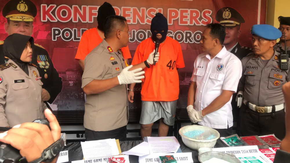 Kapolres Bojonegoro, didampingi didampingi KKasat Narkoba Polres Bojonegoro, AKP Bambang Ady Tenggani SH, dan Kasubbag Humas, AKP Sri Ismawati, di hadapan sejumlah awak media menjelaskan bahwa modus operandi pelaku dalam menjalaknan aksinya dengan membeli obat yang tergolong dalam daftar G atau obat keras, kemudian meracik kembali obat tersebut menjadi obat atau jamu tradisional, kemiudian obat-obat yang dibroduksi tersebut di jual dkembali kepada masyarakat.