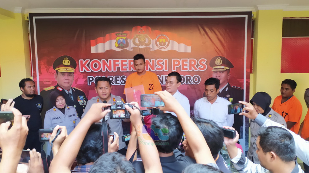 Kapolres Bojonegoro AKBP M Budi Hendrawan SIK MH, saat menggelar konferensi pers di Mapolres Bojonegoro, Jumat (17/01/2020) siang.