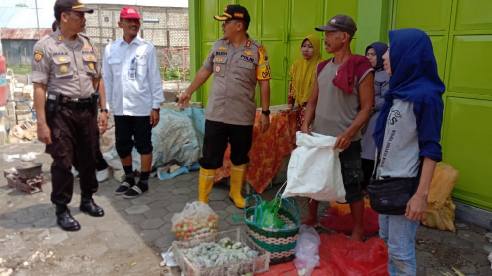 Kapolres Bojonegoro AKBP M Budi Hendrwan SIK MH, saat kunjungi lokasi penanpungan sementara pedagang Pasar Sroyo di Desa Mejuwet Kecamatan Sumberrejo Bojonegoro. Jumat (31/01/2020) pagi.