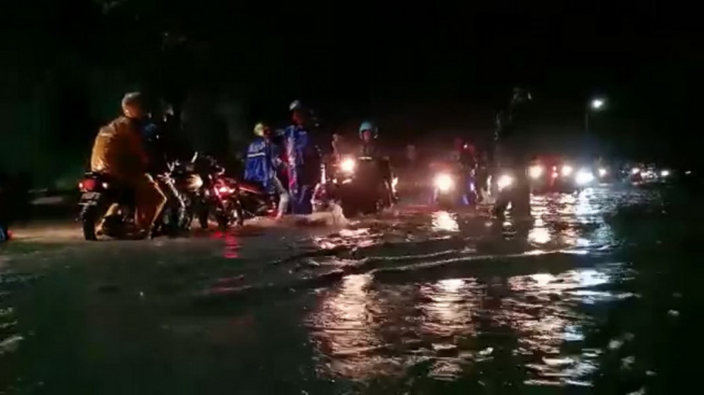 "Untuk rumah warga yang tergenang belum dapat dilakukan pendataan, karena luapan baru mulai menggenangi jalan dan pemukiman warga," kata Umar Ghoni.