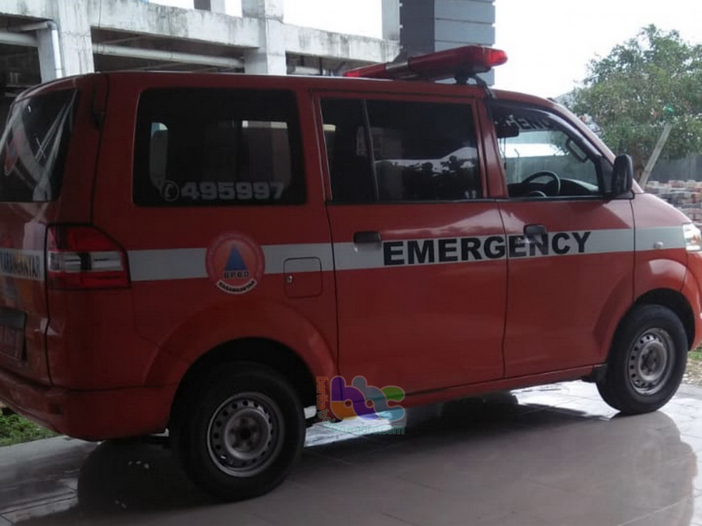 Mobil BPBD Karanganyar yang dipergunakan untuk mengangkut jenazah Suwardi, dari RSUD Bojonegoro menuju rumah duka di Kabupaten Karanganyar. Sabtu (08/02/2020) petang.