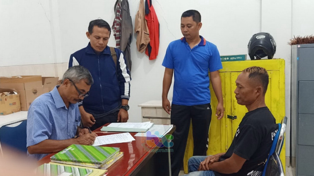 Kapolsek Padangan, Kompol Singgih Sujianto, didampingi Kanit Reskrim Polsek Padangan, Iptu Eko Bambang Riyadi, saat menyerahkan jenazah korban kepada keluarganya. Sabtu (08/02/2020) petang.