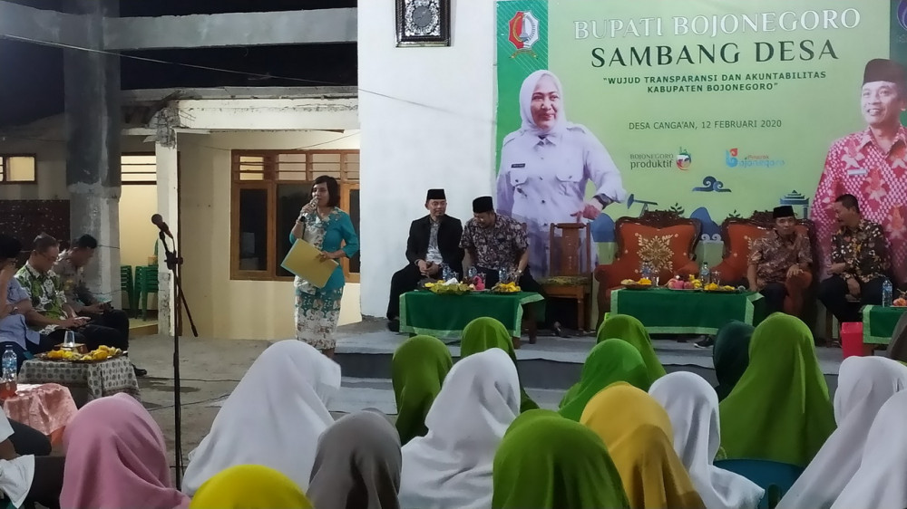 Bupati Bojonegoro, Dr Hj Anna Muawanah saat beri sambutan dalam acara Sambang Desa di Desa Cangaan Kecamatan Kanor Kabupaten Bojonegoro. Rabu (12/02/2020)