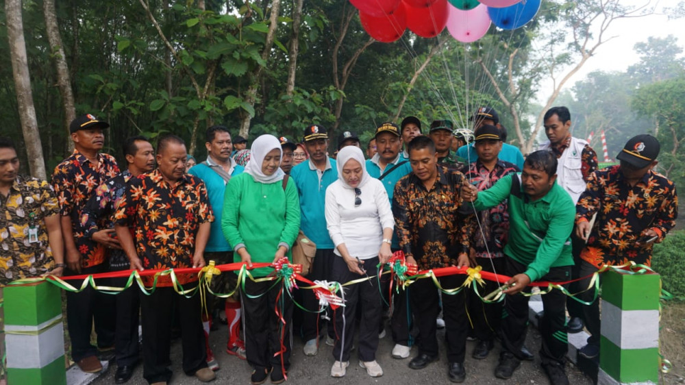 Bupati Bojonnegoro Dr Hj Anna Muawanah, saat meresmikan Jembatan Lo Cin Ngeglok di Kecamatan Kepohbaru. Kamis (13/02/2020) pagi.