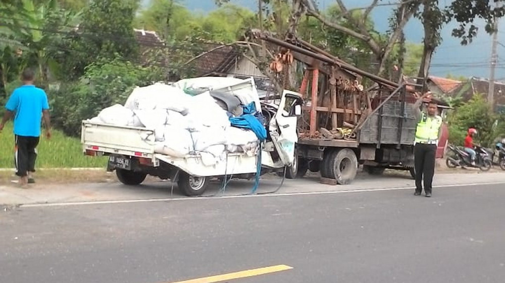 Adapun identitas kendaraan yang terlibat kecelakaan tersebut mobil Daihatsu Grand Max Pikap nomor polisi AD 1656 YZ, yang dikemudikan Eko Yulianto (36), warga Desa Klemut RT 002 RW 007 Kecamatan Bulusulur Kabupaten Wonogiri, berpenumpang Antonius Anantawidodo (51), warga Ngagel Jaya Utara RT 002 RW 005 Kecamatan Gubeng Kota Surabaya, kontra truk tronton nomor polisi B 9218 YN, yang dikemudikan Tukartiman (57), warga Gampingtengah Desa Ambarketawang RT 001 RW 014, Kecamatan Gamping Kabupaten Sleman.